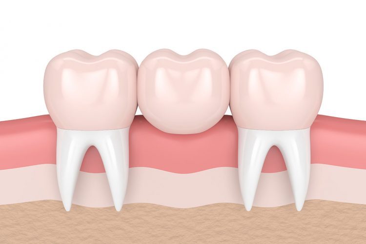 A dental bridge is a device that is used to replace missing teeth. By placing crowns on the teeth either side of the missing tooth, a prosthetic (false) tooth can be held in place – creating a bridge. The false tooth is not implanted into the socket – it is simply anchored in place by the surrounding crowned teeth. We can discuss permanent bonding into the socket if required.